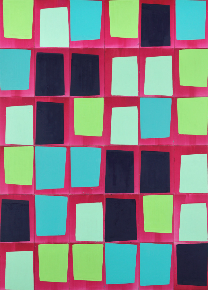 Serie von vier Bildern, Öl auf Passepartoutkarton, je 300 x 300 cm